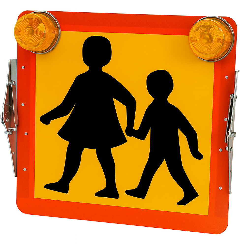 Du kör skolskjuts med buss. När ska du använda blink lyktorna på skolskjutsskylten ?