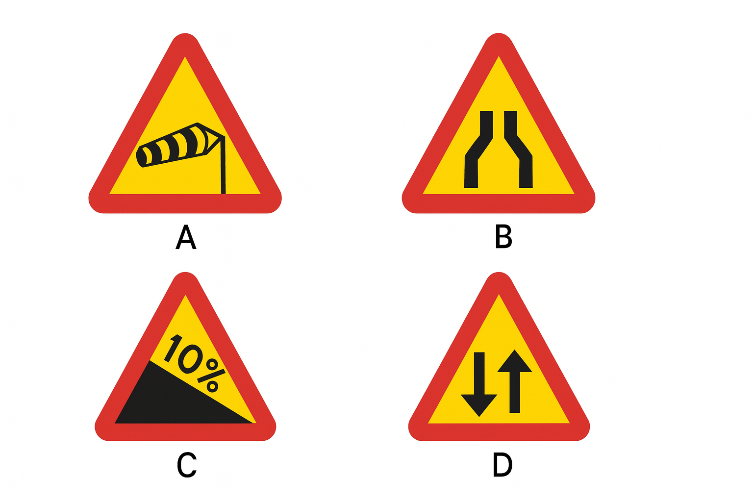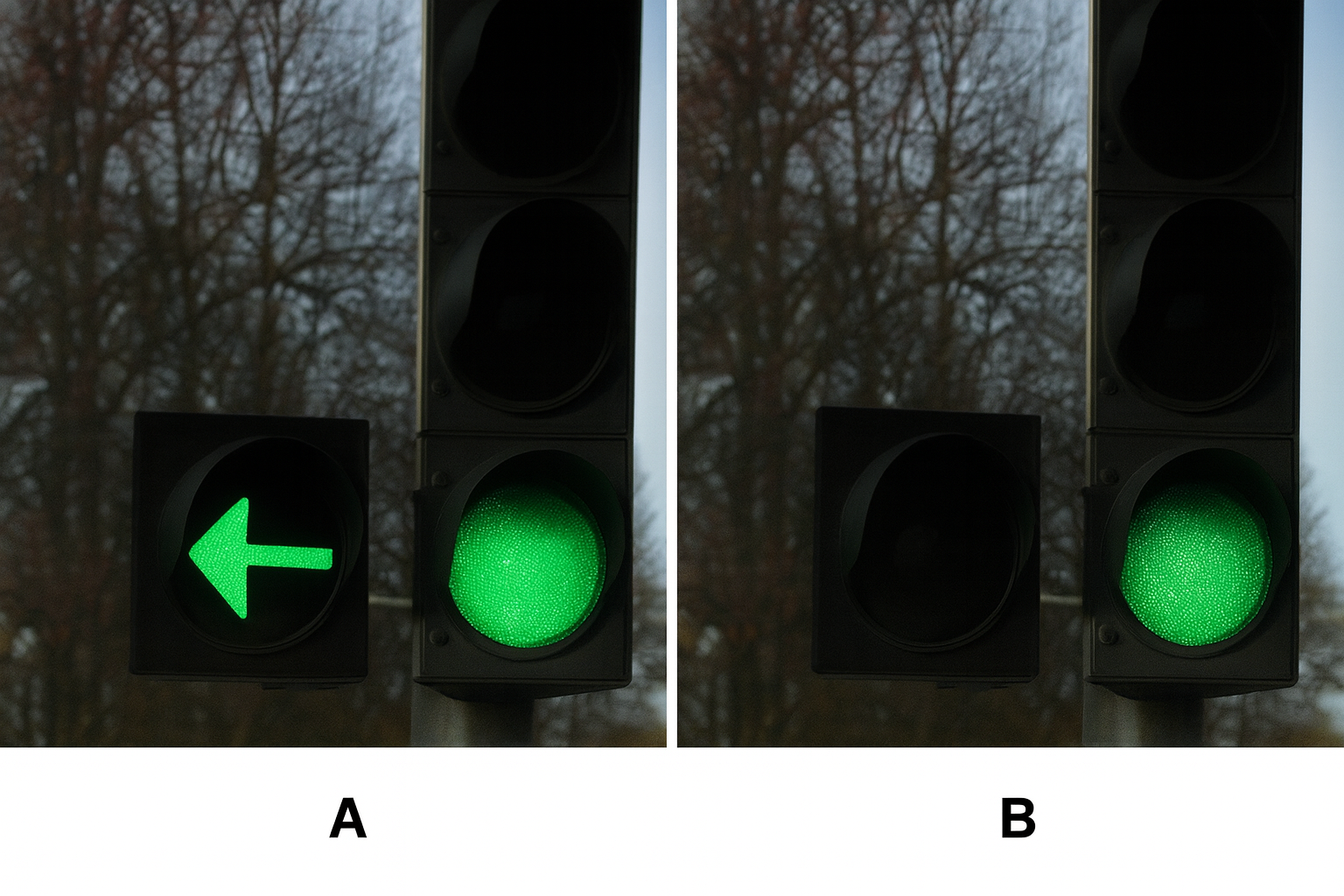 Vilket av trafiksignaler vid något alternativ anger att det är tillåtet att svänga till vänster?