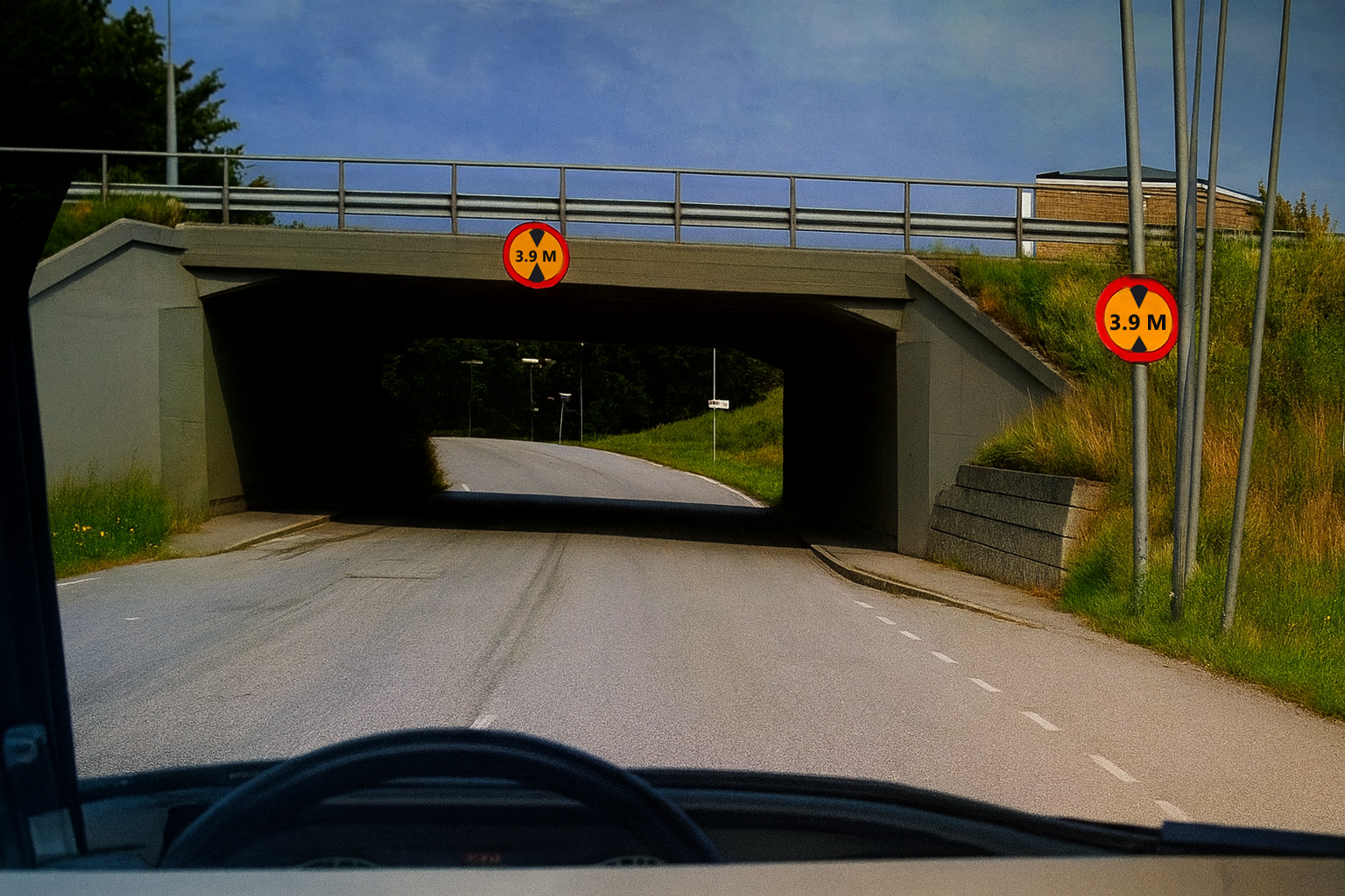 Du närmare dig viadukten på bilden och blir orsaker om bussen är 3,6 eller 3,9 meter hög. Var finner du snabbt uppgift om bussens höjd?
